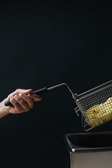 The fryer basket securely holds food during the frying process. It’s typically removable for easy cleaning and draining excess oil. Ensure the basket is properly locked into position before operation;